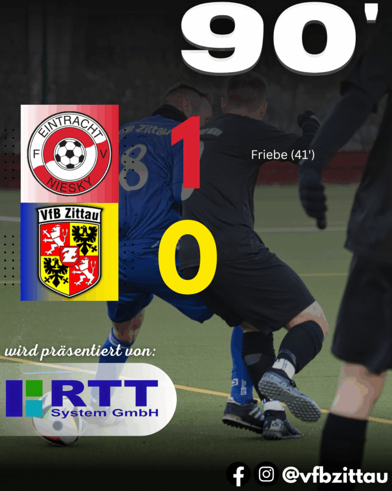 In der 41. Minute fiel dann aber doch das 1:0 für Niesky – nach einer totalen Unstimmigkeit in der VfB-Abwehr. Der Gastgeber nutzte die Gelegenheit eiskalt. Leider hatte unser Keeper diesmal nicht die nötige Reichweite, um den Ball noch zu erwischen. Daran war die Abwehr selbst schuld – schade!