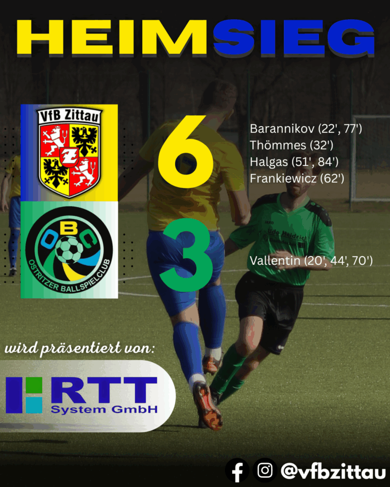 Doch plötzlich – wie aus heiterem Himmel – ein Schuss von M. Vallentin. Er sah, dass VfB-TW Dario Weber wieder einmal zu weit vor dem Kasten stand, und es schlug unhaltbar zum 0:1 für Zittau ein. Eine Führung, die völlig unnötig war, sieht man sich die Chancen zuvor für Zittau an. Nun musste noch mehr getan werden! Und genau das taten sie auch: Bereits der Gegenangriff brachte den verdienten Ausgleich zum 1:1 durch R. Barannikov. Er nahm eine Halgas-Vorarbeit an und verwertete sie konsequent zum Ausgleich!