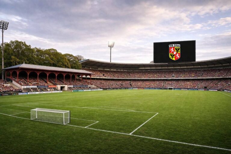 Gut 3 Wochen ist es erst her, dass der VfB Zittau im „Stadtderby“ gegen den ESV Lok Zittau im heimischen Weinaustadion mit 4:1 gewann und sich selbst zur Nummer Eins der Stadt krönte. Medial schlug schon das Hinspiel Wellen, doch das Rückspiel wurde dank der Anwesenheit des Team Rabenfront über die Grenzen der Oberlausitz hinaus bekannt. Nachdem man im darauffolgenden Spiel den amtierenden Meister LSV Friedersdorf mit 6:0 von der Wuhlheide fegte und auch gegen die Lok aus Schleife ein Punkt eingetütet wurde, schnuppert der VfB nun nach höheren Gefildern. Wie zu hören ist, soll das Weinaustadion im Rahmen eines 5-Jahres-Plans ausgebaut werden. Dieser umfasst den Ausbau des Rundlaufs auf insgesamt 30.000 Zuschauerplätze mit rundum-Überdachung und großen LED-Anzeigetafeln, wie man sie sonst aus den großen Stadien der Profi-Vereine kennt.